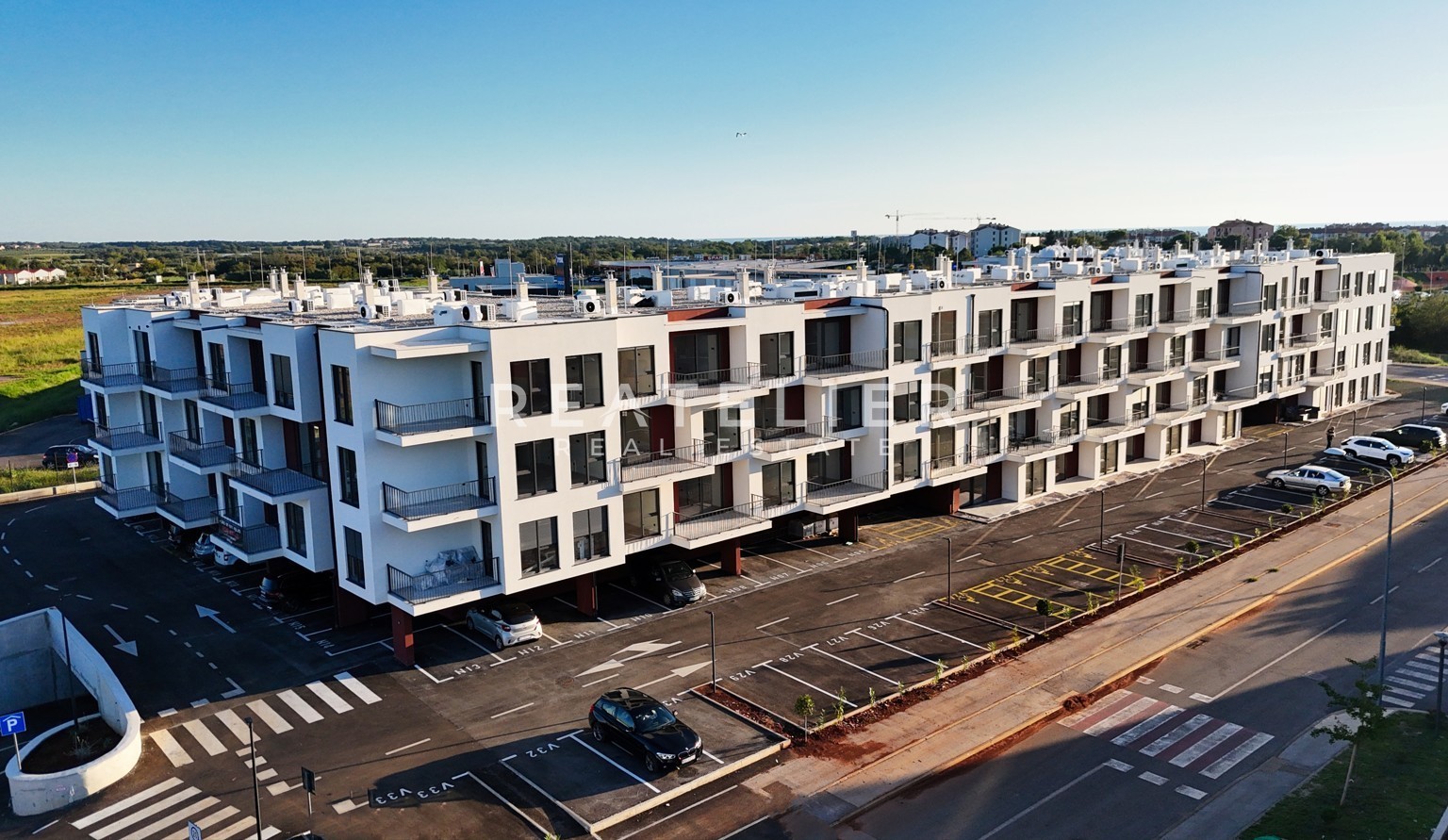 Hervorragendes modernes Wohnprojekt mit 122 Wohneinheiten in der Stadt Umag in der Nähe zahlreicher kommerzieller und sozialer Einrichtungen. Besonders hervorzuheben ist die Nähe zu Schulen, verschiedenen Geschäften und einem zeitgemäßen Multifunktionssportplatz, der nur hundert Meter vom Gebäude entfernt liegt. Die gesamte Gebäudestruktur ist aus Stahlbeton konstruiert. In den Wohnungen sind die Trennwände aus doppelt dicken Gipskartonplatten gefertigt, um zusätzliche Wärme- und Schalldämmung zu gewährleisten. Die Fassadenverkleidung mit 10 cm Wärmedämmung sorgt für eine ausgezeichnete Energieeffizienz. Die Außenöffnungen sind mit hochwertigen PVC-Profilen ausgestattet (elektrische Rollläden in den Schlafzimmern). Für die Bodenbeläge werden ausschließlich hochwertige Keramik in großem Format und erstklassiges Parkett verwendet. Jede Wohnung ist mit einer hochwertigen Multisplit-Heiz- und Kühlanlage ausgestattet und verfügt über einen eigenen Wasser- und Stromzähler. Alle Wohnungen sind mit Telefon-, Antennen-, TV- und Internetanschlüssen ausgestattet, wobei eine Gegensprechanlage mit Video-Gegensprechanlage für jede Einheit installiert ist. Erdgeschosswohnungen verfügen über zusätzlichen Außenbereich, während jede Einheit im Projekt über 1 oder 2 Parkplätze (überdachter Parkplatz oder Garage) verfügt. Die voraussichtliche Fertigstellung des Baus ist für 6/2025 geplant.